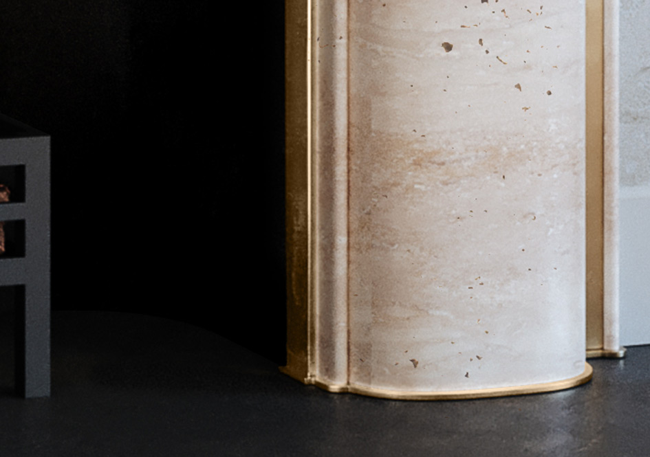 Modern in form and organic in finish, The Mercury delivers an avant-garde dimension to any design scheme. Aged brass elements are combined with an unfilled Ivory Travertine to achieve a deluxe aesthetic with aged brass elements.