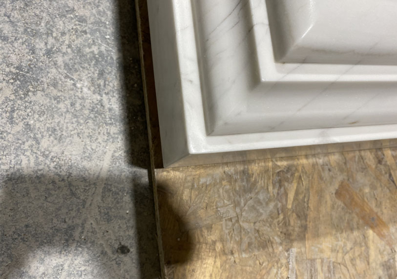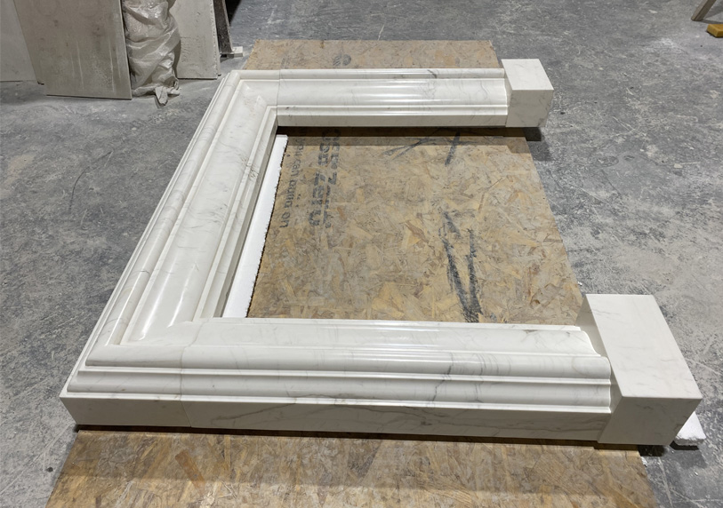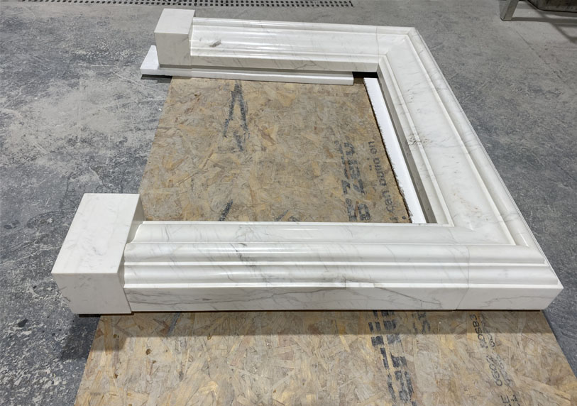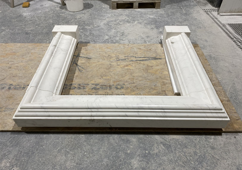 Lutyens re-imagined the bolection in many different forms. This is a robust example with deep mouldings carved in statuary marble.