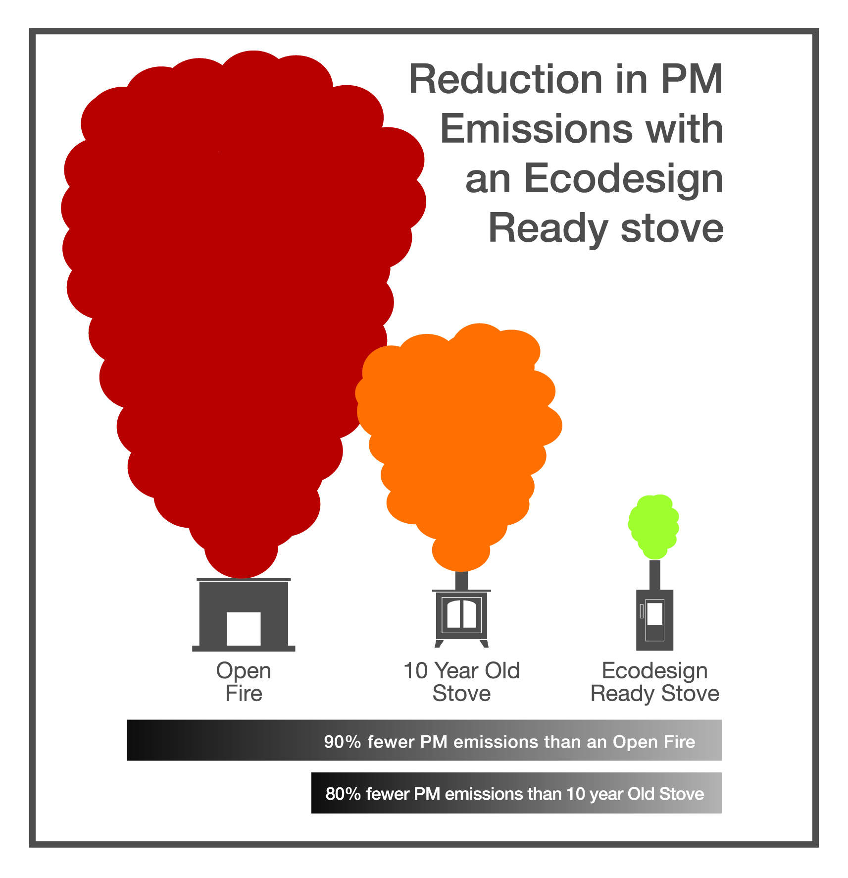 There are many sources of PMs including agriculture, industry, transport and domestic. The Government definition of domestic sources includes outdoor burning of garden waste, the use of fire pits, open fires, barbecues and multi-fuel or wood burning stoves. With the exception of stoves all of these sources release completely unfiltered PM emissions. Stoves should be viewed separately because a modern Ecodesign compliant stove will remove the majority of these harmful emissions. To give some context a modern Eco design stove will produce 90% less emissions than an open fire or fire pit and up to 80% less than an old wood burning stove.